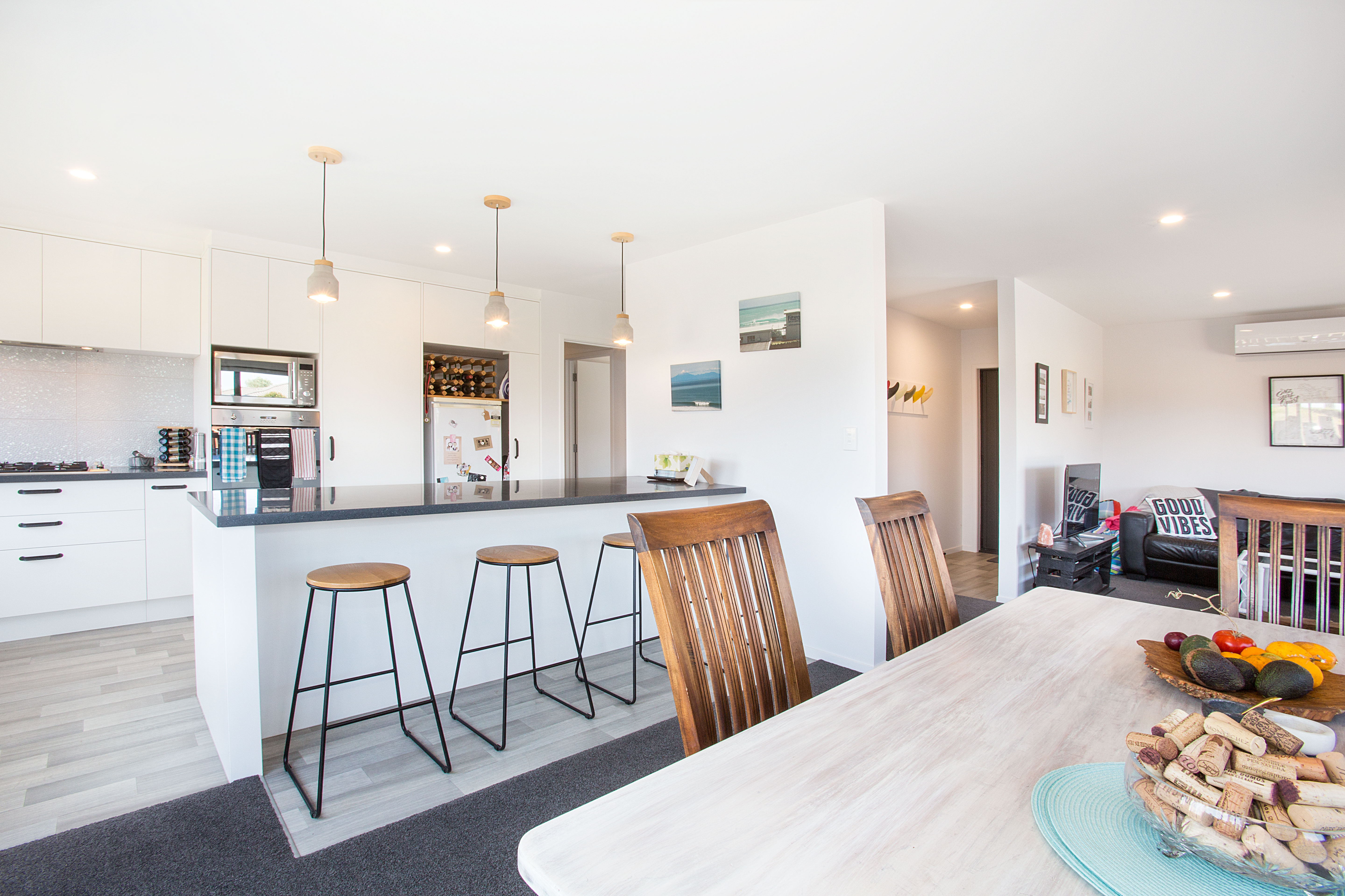 The position of the home, the number of well placed windows and the large deck (which extends out from the lounge creating a second living space), meant maximum sun was achieved.