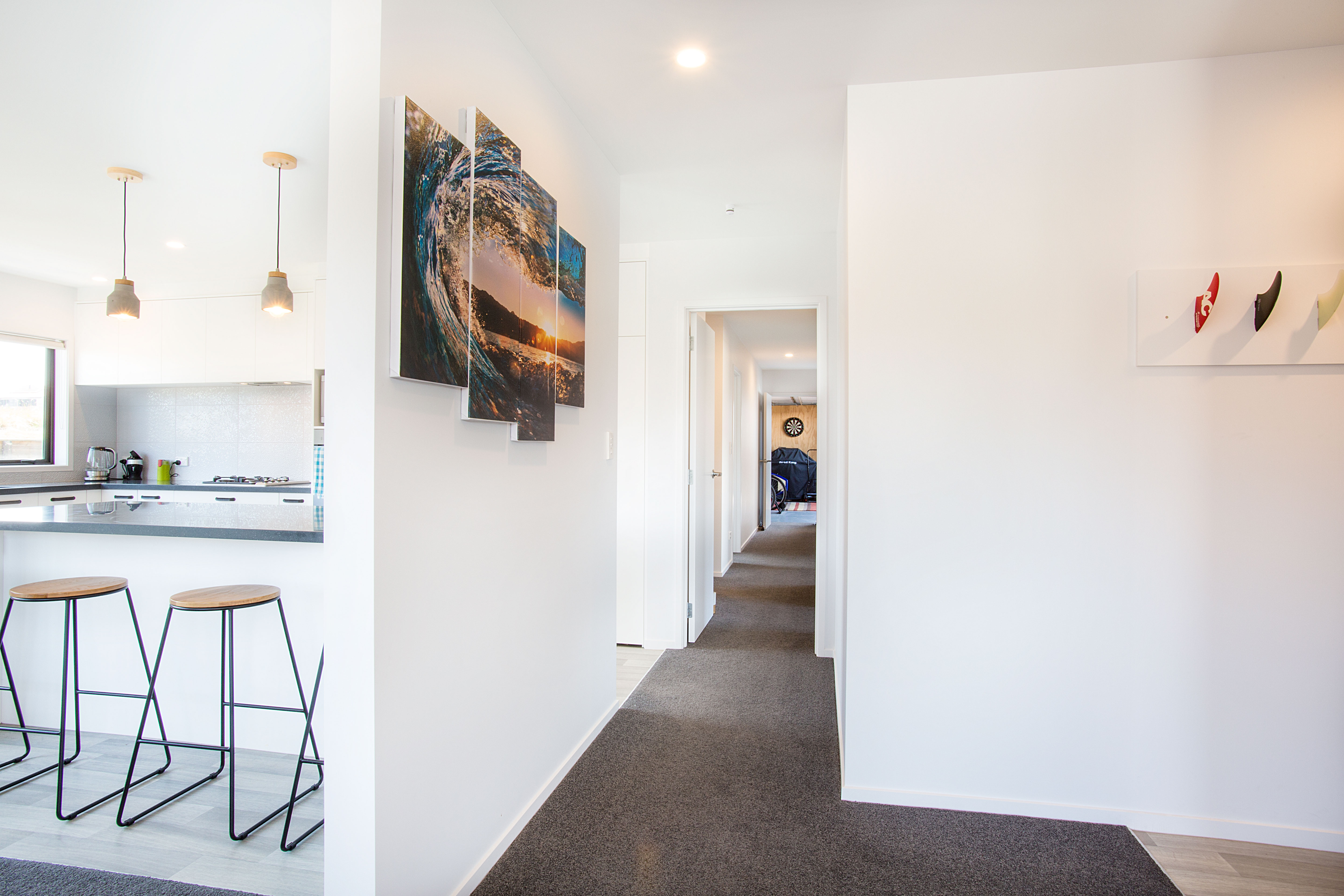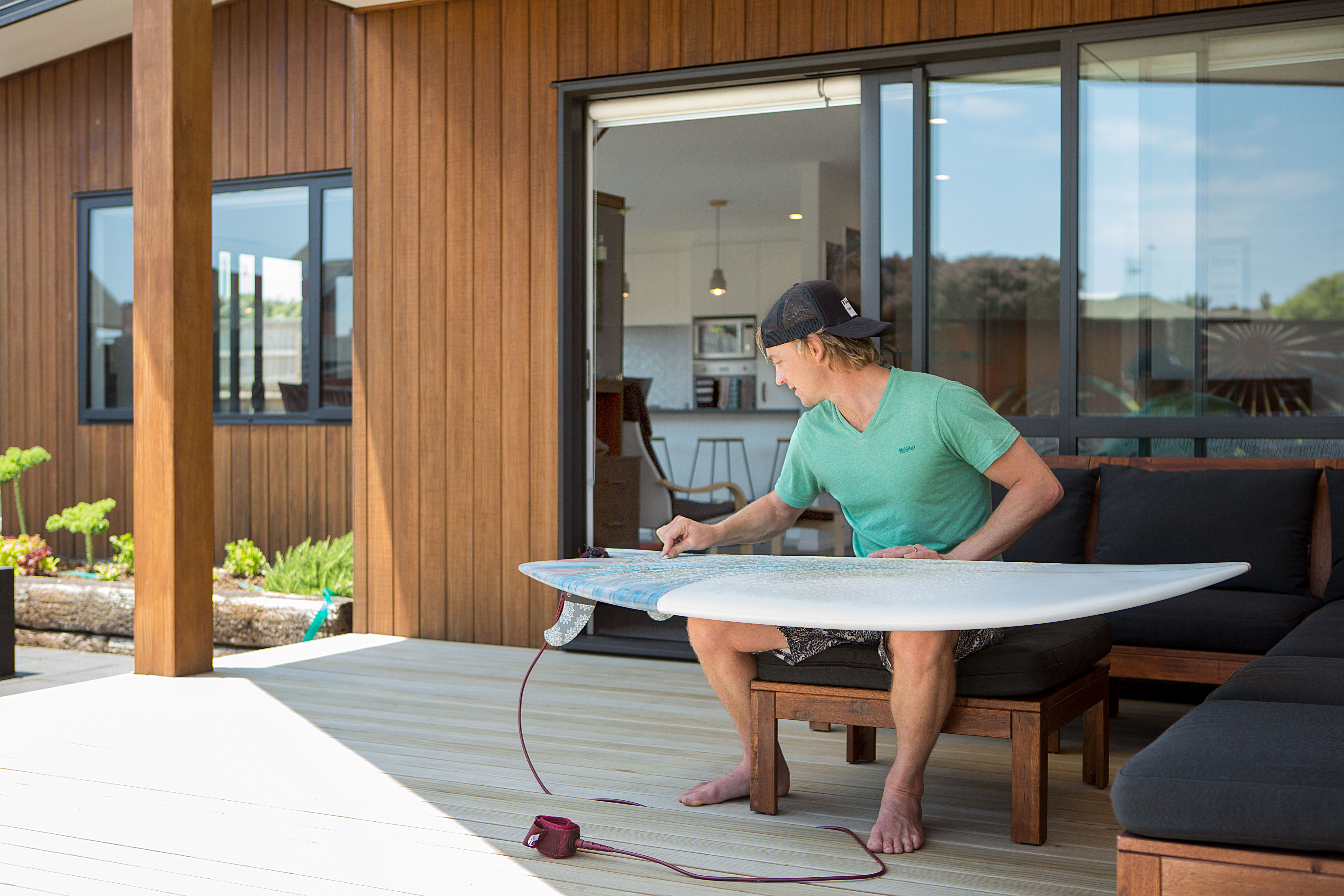 Andrew and Julie Bishop were building their first home. Their new home had to have space for when they started a family. It also had to accommodate the pair working from home when they needed to. As well as that, the home needed allocated areas and storage for their outdoor passions such as surfing, biking, fishing and other sporting activities.